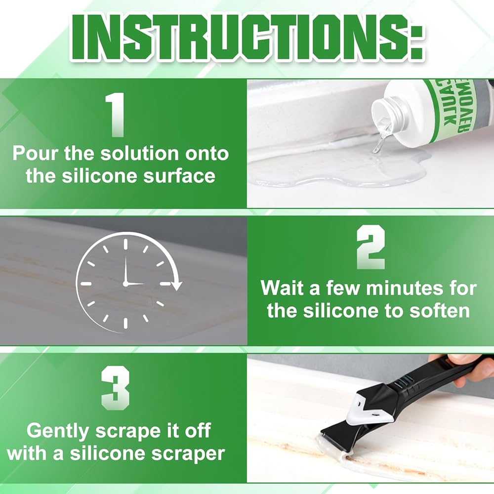 Powerful Softening: Caulk remover's powerful dissolving formula quickly penetrates and softens cured and hardened silicone, caulking agents, and silicone sealants, causing them to swell and fall off.