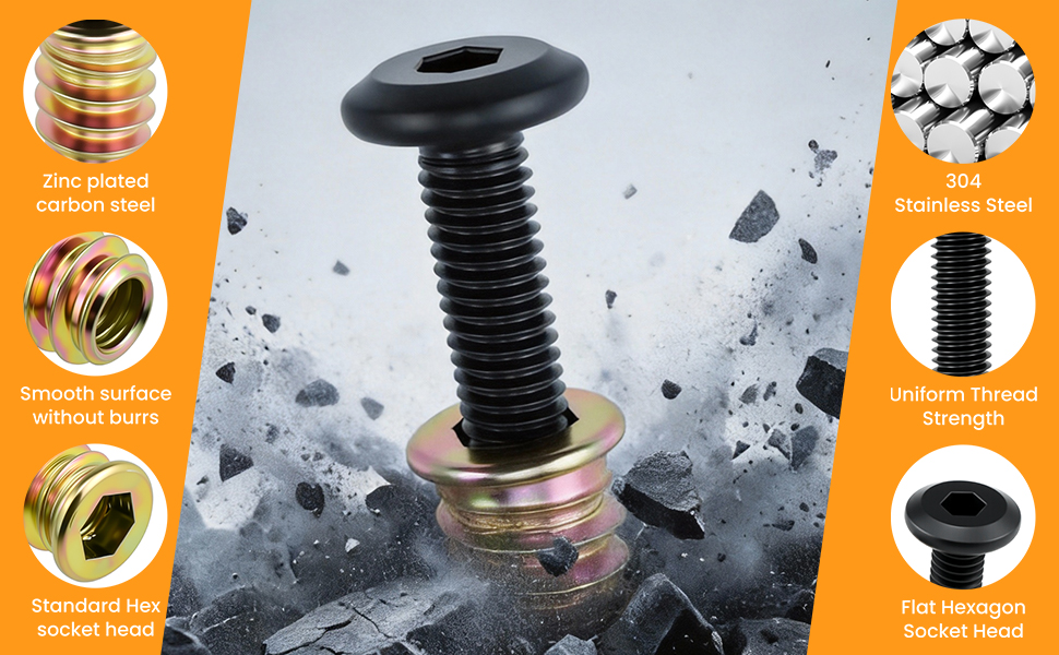 𝐏𝐫𝐞𝐦𝐢𝐮𝐦 𝐌𝐚𝐭𝐞𝐫𝐢𝐚𝐥: Furniture screws are made of high-quality carbon steel and nuts feature zinc plating for corrosion and rust resistance. Uniform, clear threads ensure stable stress distribution and reliable fastening