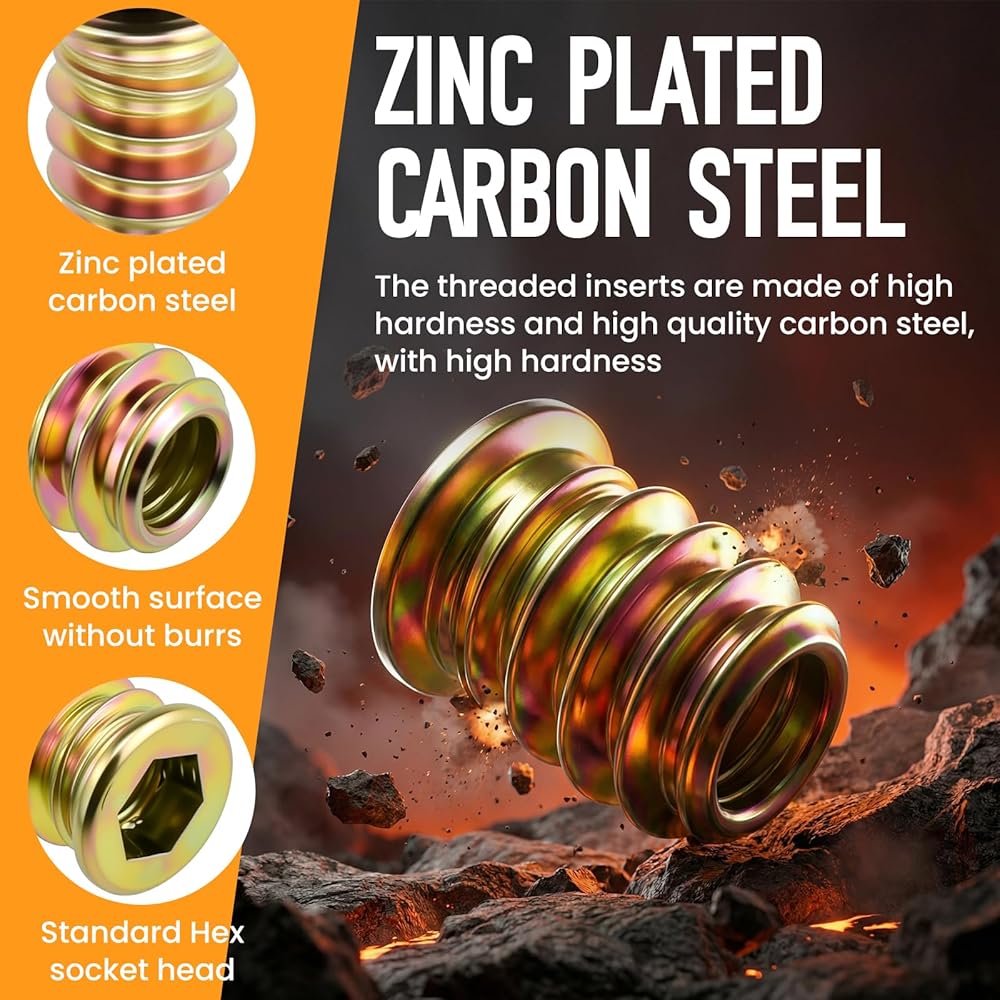 𝐄𝐚𝐬𝐲 𝐓𝐨 𝐈𝐧𝐬𝐭𝐚𝐥𝐥: Our threaded wood inserts are equipped with two wrenches, you only need to drill a hole of suitable size, and then use the hexagon wrench provided by us to quickly realize safe and firm installation