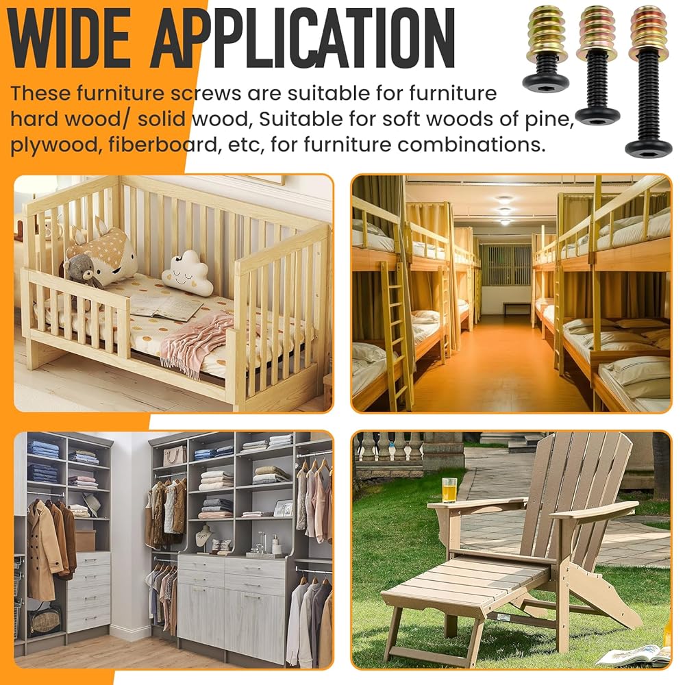 𝐖𝐢𝐝𝐞 𝐂𝐨𝐦𝐩𝐚𝐭𝐢𝐛𝐢𝐥𝐢𝐭𝐲 & 𝐌𝐢𝐱𝐞𝐝 𝐒𝐢𝐳𝐞𝐬: 3 practical screw sizes fit different wood thicknesses—works with hardwood, softwood, solid wood, plywood, composite & fiberboard. Perfect for T-joint fastening in cabinets, wardrobes, bookshelves, beds, chairs and sofas