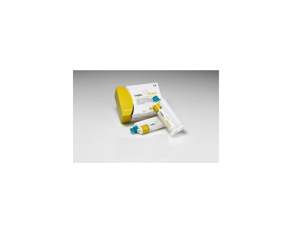 Vonflex S Heavy Body (50ml x 12 Cart.) Working Time 2'15" Setting time 4'. Highly hydrophilic and thixotropic, easy handling and nice injecting, long working time and shorter permanence in the oral cavity. Precise reproduction of the finest details. trouble free and safe removal. hight dimensional stability. Homogeneous and bubble free material quality. Easy and clean handling. Easy and safe removal from mouth. Ideal final hardness. Vonflex S Heavy Body (50ml x 12 Cart.) Working Time 2'15" Setting time 4'. Highly hydrophilic and thixotropic, easy handling and nice injecting, long working time and shorter permanence in the oral cavity. Precise reproduction of the finest details. trouble free and safe removal. hight dimensional stability.