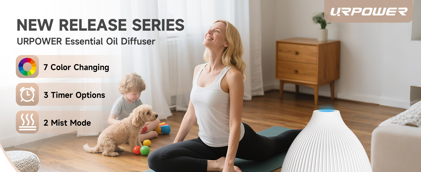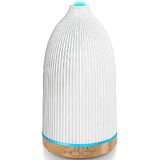 Elegant Wood Grain Base & Ceramic-Like Design – Features a stylish wood grain base with a sleek, textured plastic upper body that mimics high-end ceramic, blending seamlessly with any home or office decor. Creating a soothing ambiance in your bedroom, living room, office, or even for your travel.