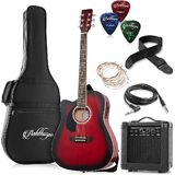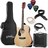 Complete guitar bundle: Package includes the Ashthorpe left-handed guitar with on-board 4-band pickup EQ, 10 Watt amplifier, a soft nylon "gig bag" guitar case, thin, medium & heavy celluloid picks, guitar cable, a shoulder strap, an extra set of strings, and an owner's manual.