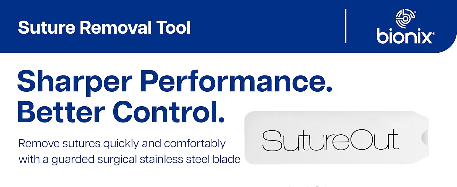 EFFICIENT SUTURE REMOVAL: The Bionix suture removal tool is a single-use, disposable tool with a guarded blade that cuts sutures from outside the suture loop, improving efficiency for healthcare providers during removal.