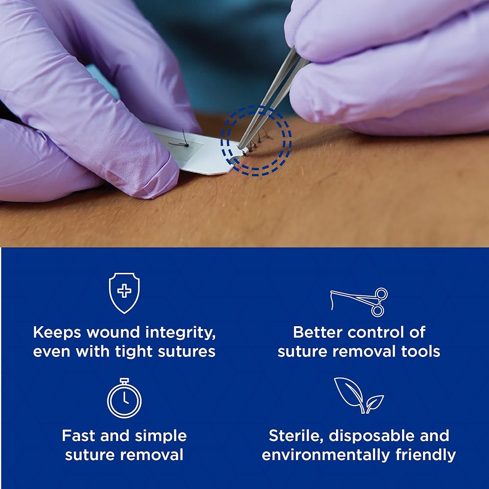 SAFE & CONVENIENT: Each suture removal tool includes an adhesive pad attached for collecting removed sutures, promoting a clean environment & organized workspace.