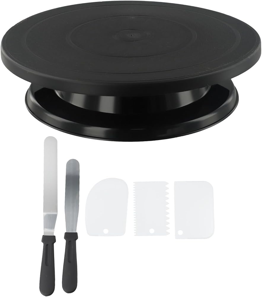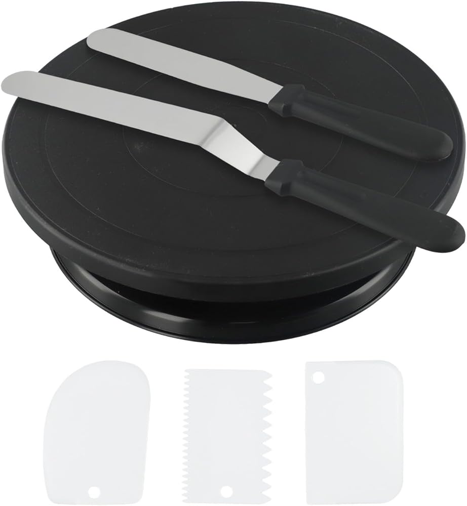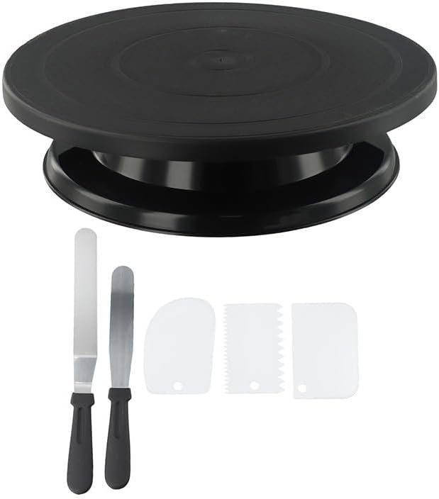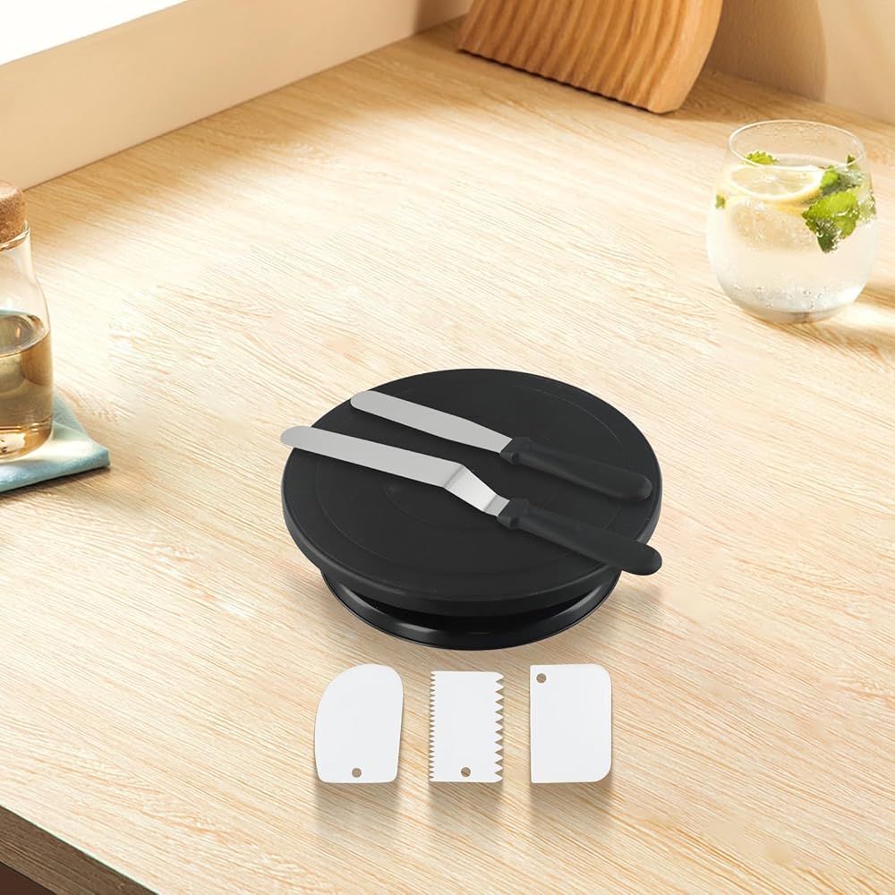 6PC Cake Decorating Kit with for 360-Degree Rotating Turntable, Non-Slip Baking Accessories Easy Cake Frosting and Design, for PP Material, Includes Spatulas and Scrapers, Black