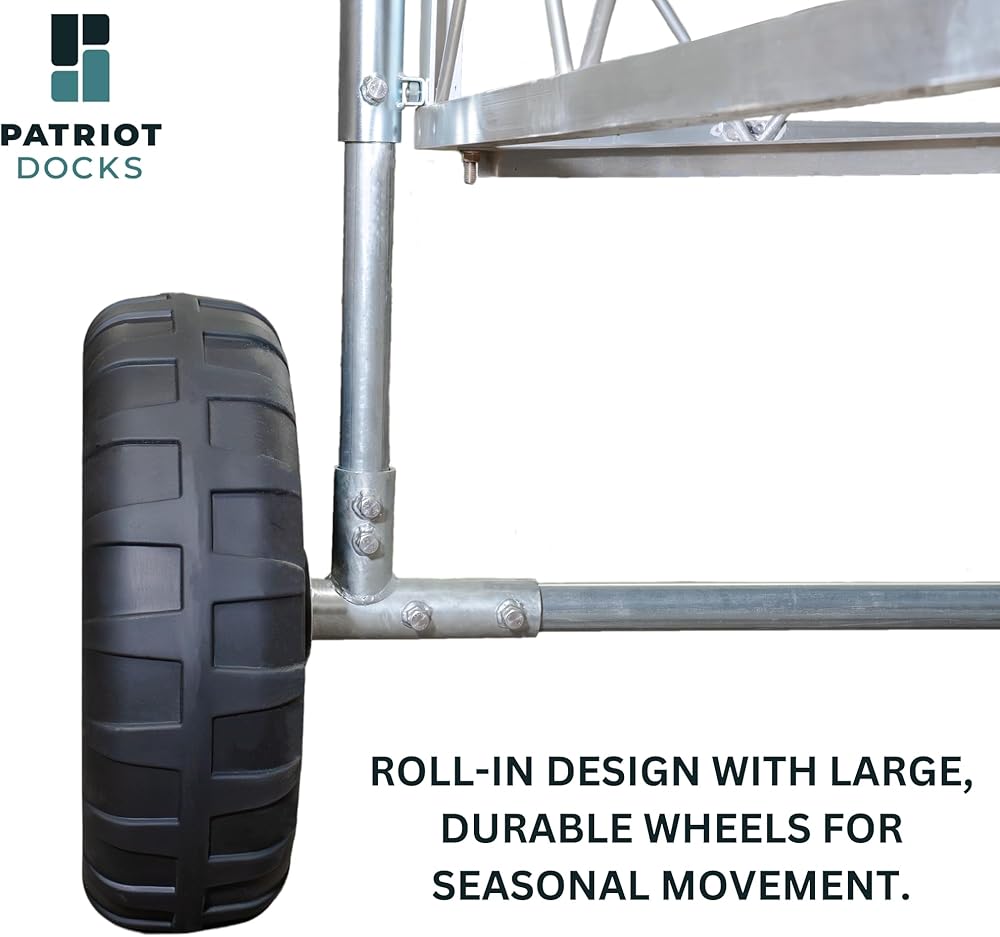 The Patriot Docks 24" Plastic Dock Wheel (10821) is designed to make dock installation, removal, and seasonal adjustments easier than ever. With its large diameter and wide tread, this wheel rolls smoothly over a variety of shoreline conditions including sand, mud, and rocky terrain. Constructed from heavy-duty molded plastic, the wheel features reinforced ribbing for strength and durability in demanding waterfront environments. A built-in water-fill design allows the wheel to add weight and stability when submerged, helping keep your dock secure in place. When removed from the water, it automatically drains to remain lightweight and easy to handle. Designed for compatibility with standard dock axle systems and 1-1/2" Schedule 40 pipe, this wheel is a versatile solution for both new dock builds and upgrades. Whether you're installing a roll-in dock or simplifying seasonal removal, this dock wheel provides a reliable and efficient solution. Specifications Material: High-density polyethylene (HDPE) Quantity: Two wheels per pack Diameter: 24 inches Axle Size Compatibility: Fits 1-5/8” dock axles Weight Capacity: Supports heavy dock loads while maintaining stability Installation Guide Slide Onto Axle – Position the dock wheels on either side of the axle. Secure in Place – Use locking pins or brackets to keep the wheels firmly attached. Test Movement – Ensure the dock rolls smoothly before finalizing placement. The Patriot Docks Plastic Dock Wheels provide an efficient, durable, and hassle-free solution for making your dock system mobile. Whether you're installing, removing, or adjusting your dock, these wheels make the process smooth and effortless.