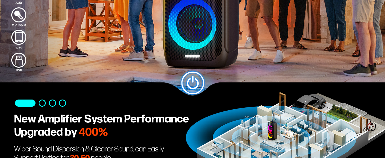 Non-Stop 24-Hour Entertainment:Keep the party going all day and night with a massive 18000mAh built-in battery that delivers up to 24 hours of continuous playback. No need to scramble for outlets during outdoor parties or long gatherings. Plus, with fast charging technology, it gets back to full power quickly, ensuring your entertainment never misses a beat.