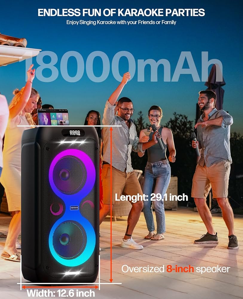 Karaoke Machine,Party Speaker Bass Boost w/Double 8" Woofer,Big Portable Bluetooth Speaker, 2 Wireless Microphone,24H/EQ/REC/RGB Light/Echo,Portable PA System for Outdoor Party, Home Gathering