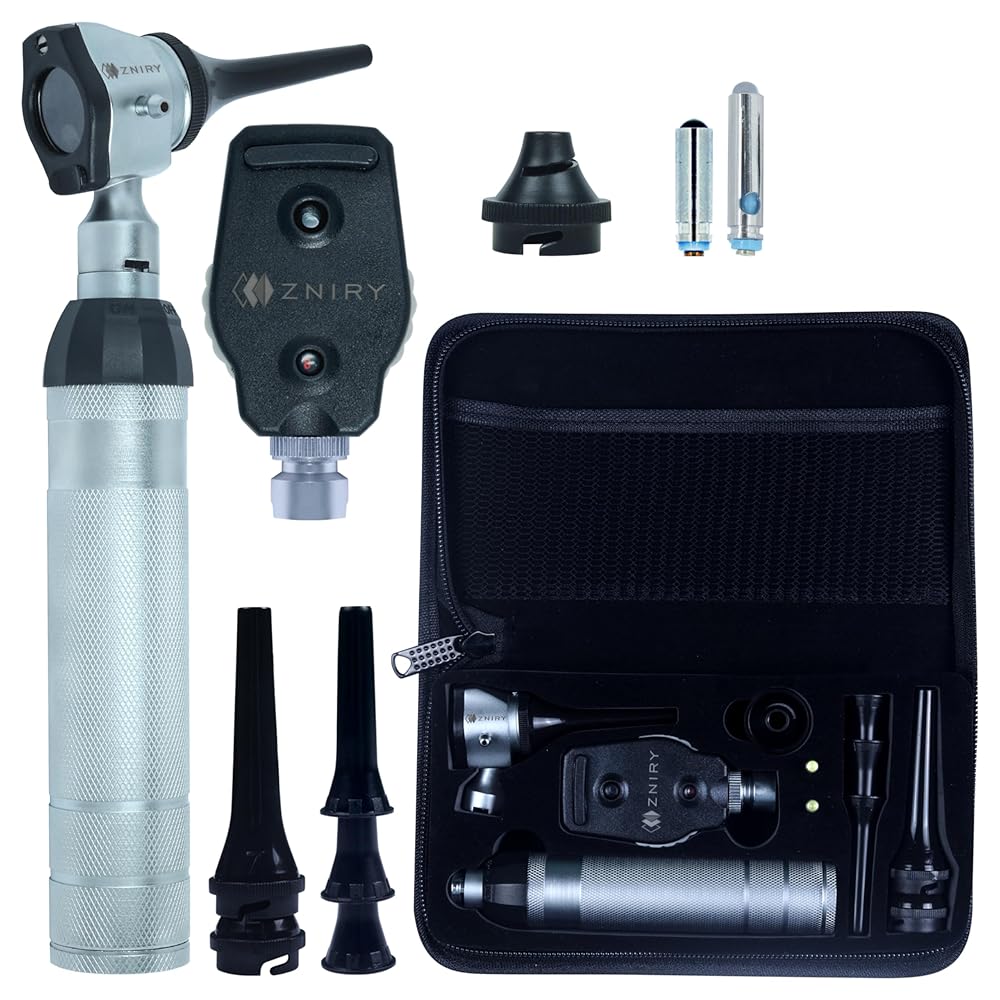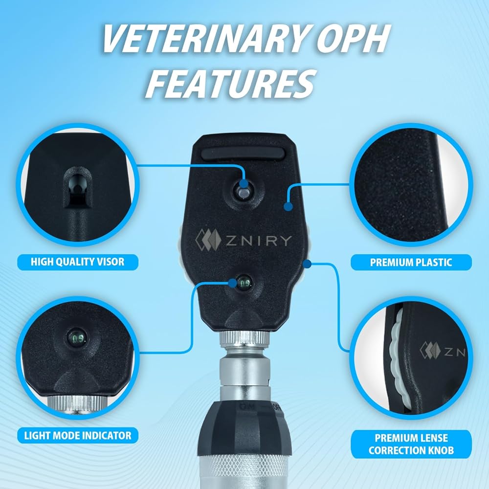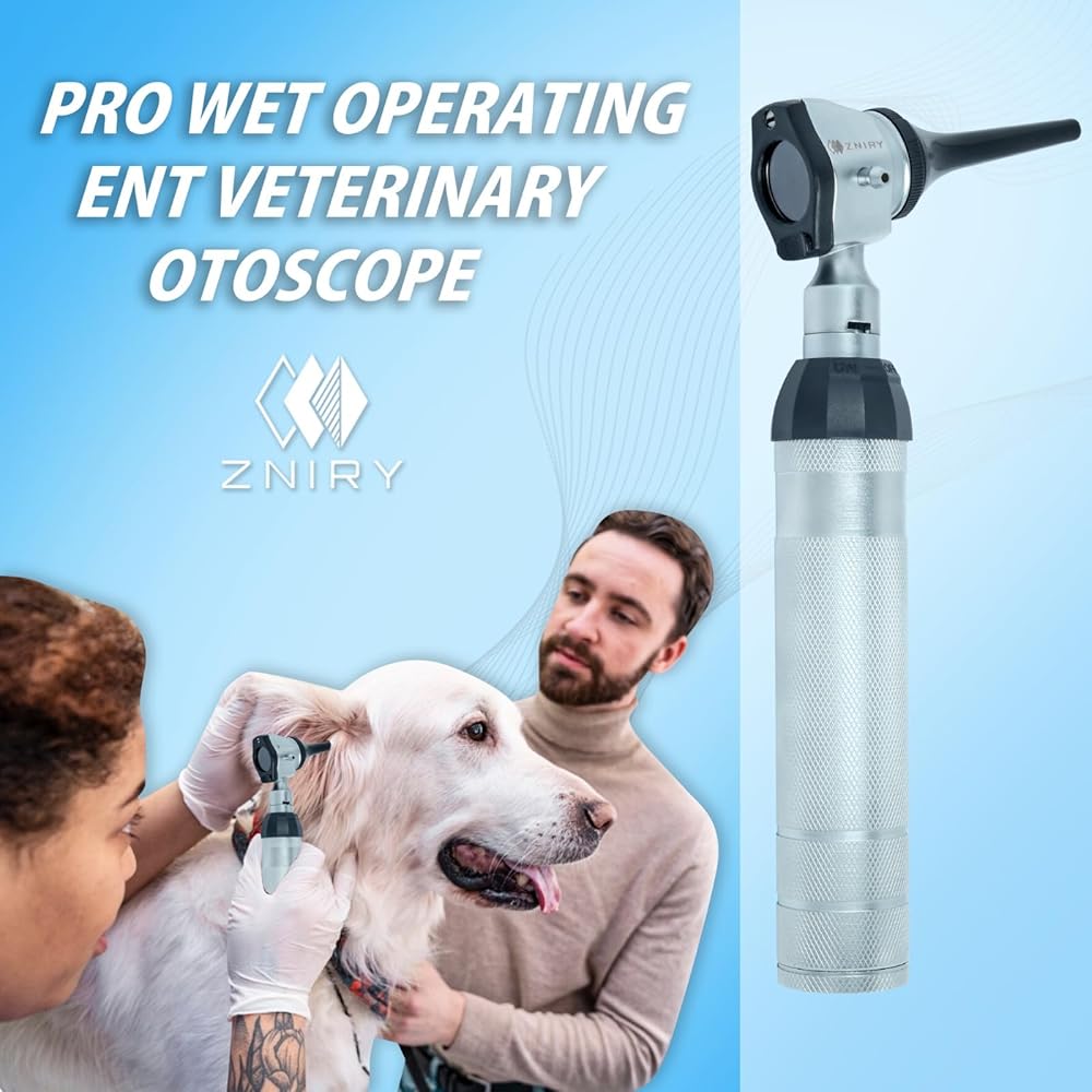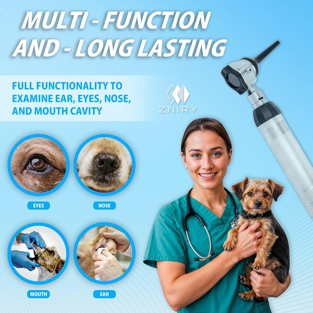 The Zniry Veterinary Otoscope and Ophthalmoscope Diagnostic Set is a reliable and easy-to-use medical examination kit for professional veterinary care. Designed to support thorough ear and eye assessments, this set helps veterinarians detect issues early and provide effective treatment. With precision optics, bright illumination, and a practical ergonomic design, the Zniry diagnostic set ensures accurate evaluations while maintaining animal comfort. Multiple specula sizes allow safe examinations across different animal breeds and sizes. The included storage case keeps all Ideal For Veterinary clinics & animal hospitals Mobile and field veterinarians Animal shelters & rescue centers Veterinary students & training programs What's Included Veterinary Otoscope Veterinary Ophthalmoscope Multiple Ear Specula Durable Storage Case Extra 2 LED