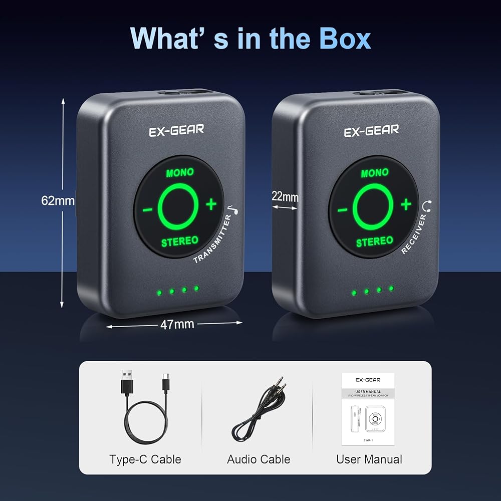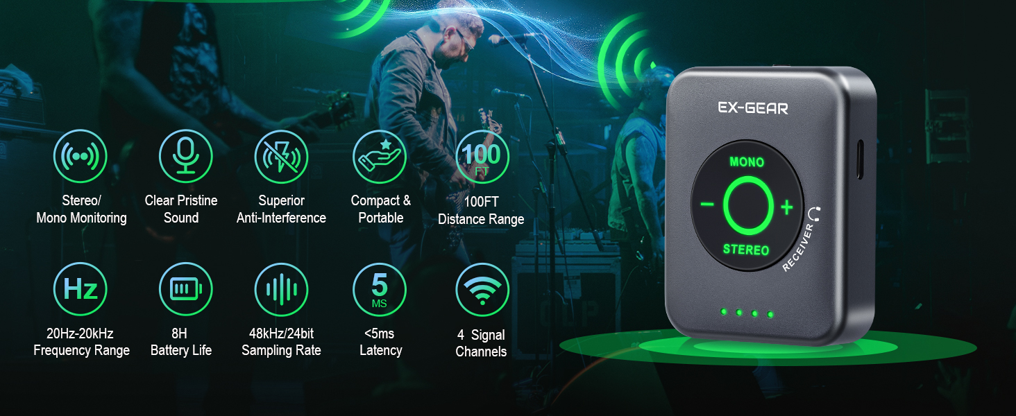 【5.8GHz Monitoring with Lossless Audio】Experience zero-distract monitoring with 48kHz/24-bit lossless digital transmission. The 5.8GHz band delivers a clean, stable, true-stereo sound to avoid common 2.4GHz interference, so that you can hear every detail on stage or in the studio.
