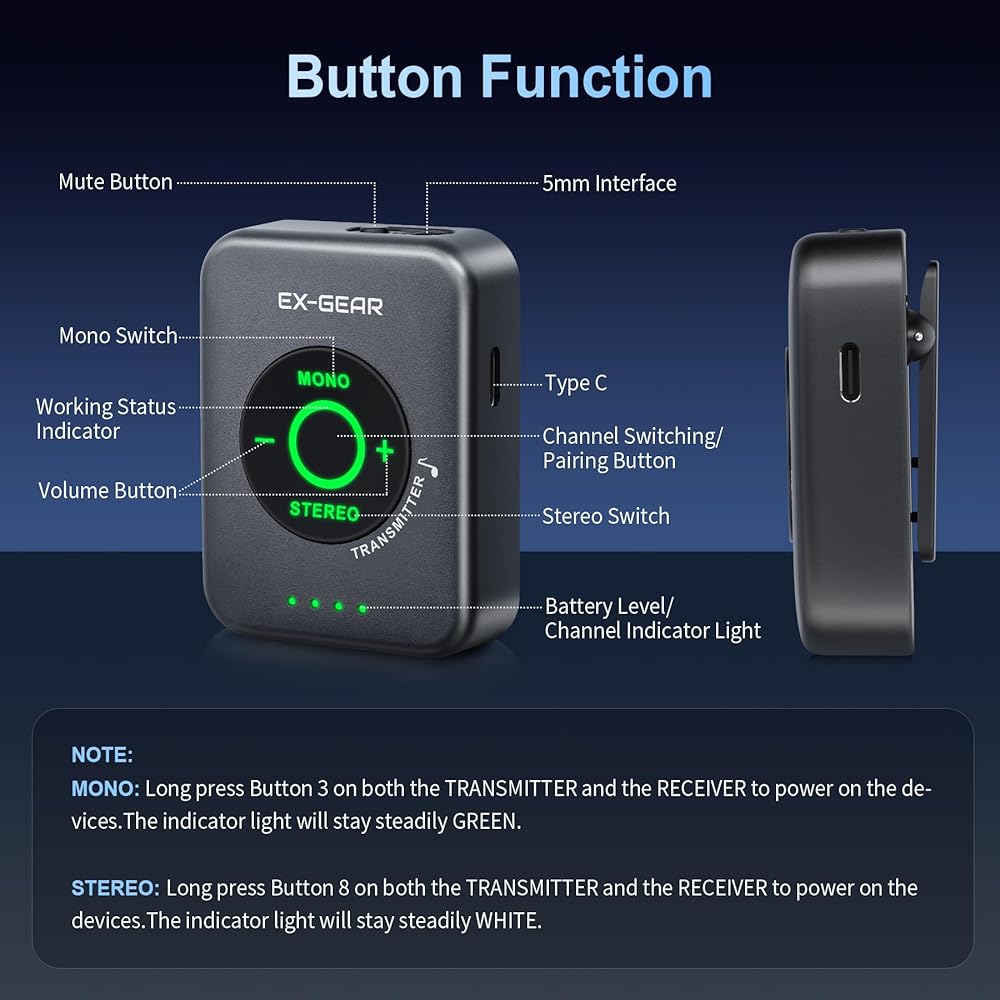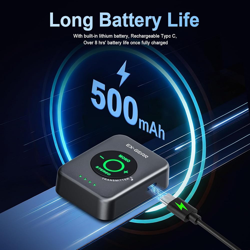 【Unique Stereo/Mono Flexibility】Supports authentic 100% stereo transmission with Mono/Stereo switch. Smart frequency-hopping technology avoids interference from other wireless devices, ensuring smooth, stable, drop-free audio—even in complex environments.