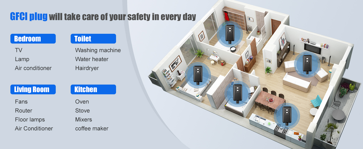 【Wide Range of Applications】-Replacement GFCI plug are widely used in small and large power household appliances and various electrical equipment. Such as refrigerators, air conditioners, microwave ovens, water heaters, vacuum cleaners, hanging irons; generators, lawn equipment, power tools (saws, drills, air compressors), car chargers, cleaning machines, etc.