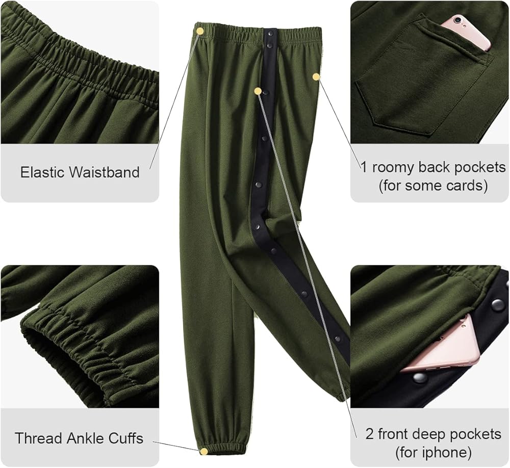 🏀 Special Gift & Occasion: The post surgery tear away pants also suitable for those in wheelchairs, beds, post-surgery, or having difficulty moving lower body.athletic fit workout Sweatpants perfect for basketball, fishing, camping, outdoor, climbing, working, traveling , golf, gym, gardening or casual, climbing, running, daily work and exercise, etc.