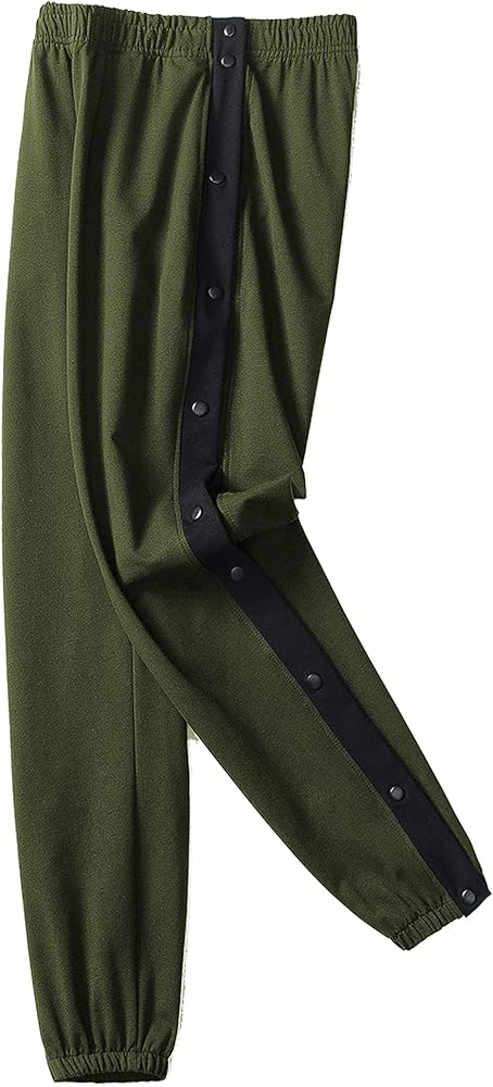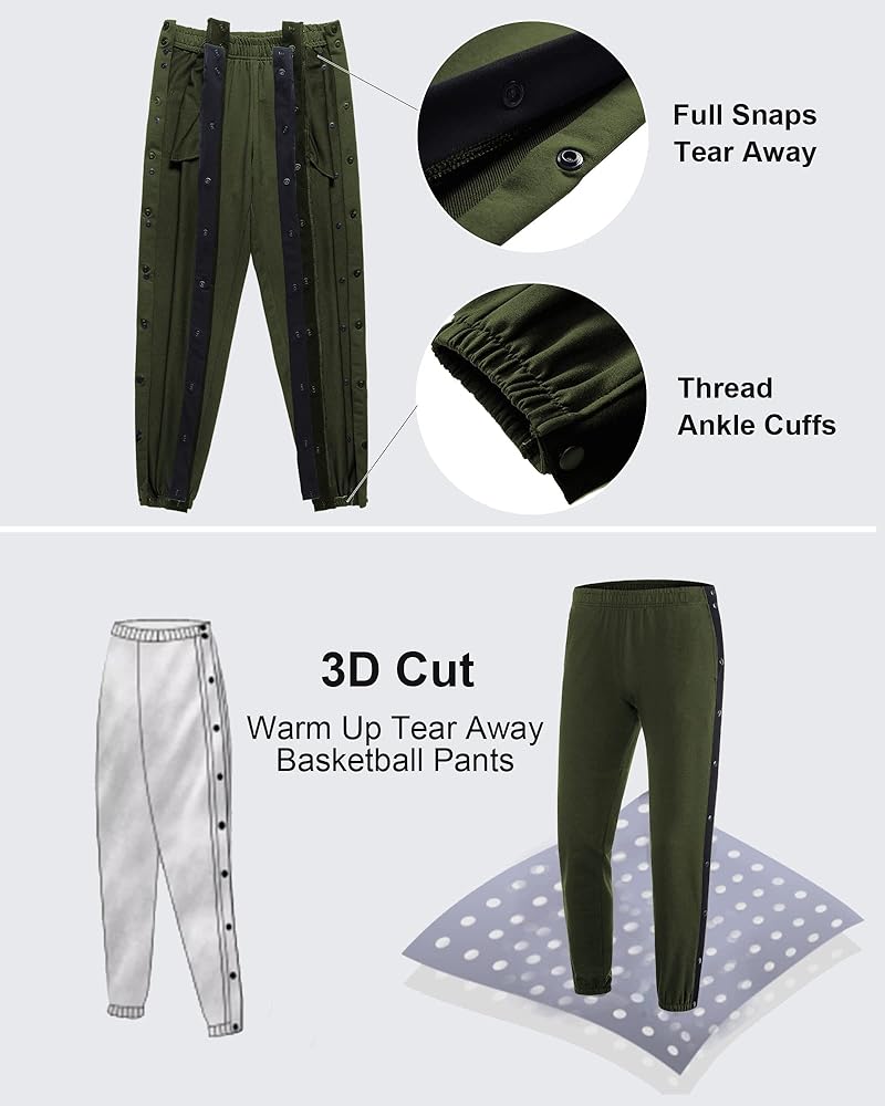🏀 Full Snaps Tear Away: Double-sided full tearing design, the number of buttons can be unfastened according to the needs of the activity, mens jogger sweatpants can be easily put on and taken off, and the movement is free. Warm up pants can be done while exercising and ripped off quickly before a game.