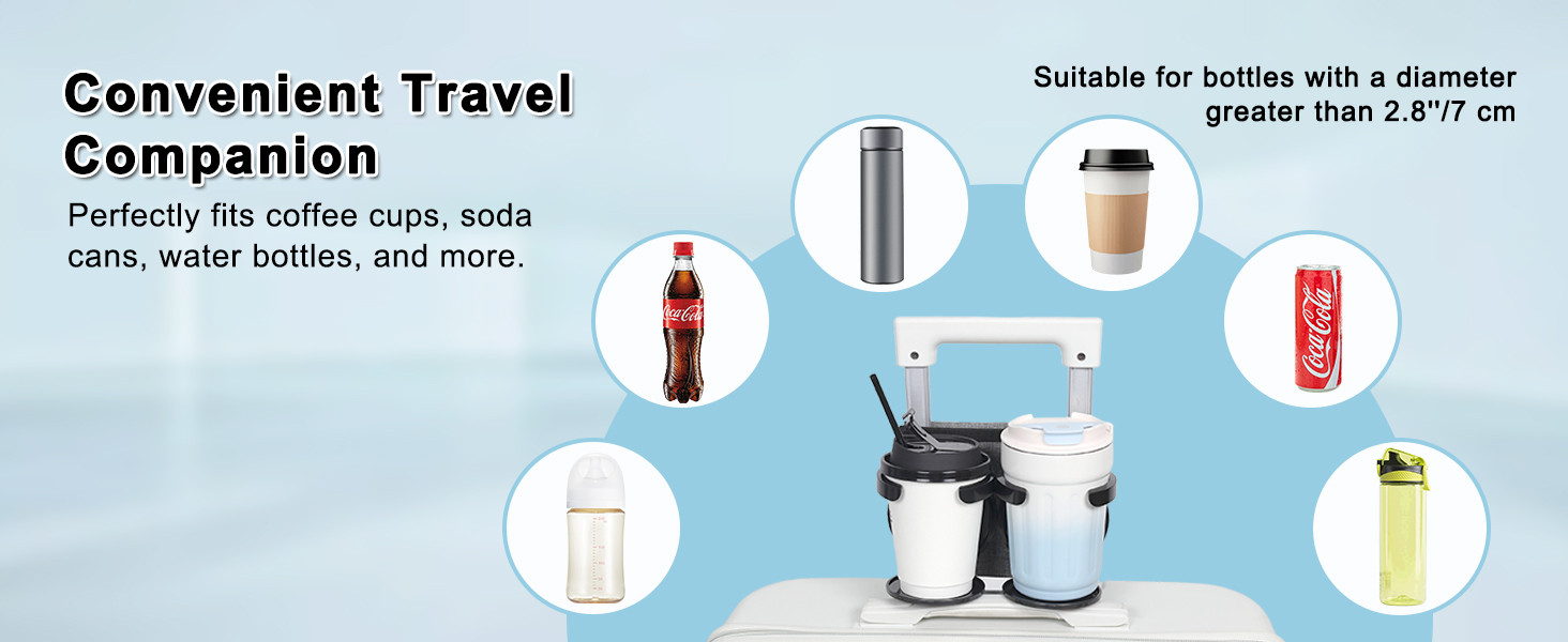 Convenient Travel Companion: Travel drink holder easily mounts to most luggage pull handles up to 6.5'' wide and comes off just as easily—setup and storage are a snap