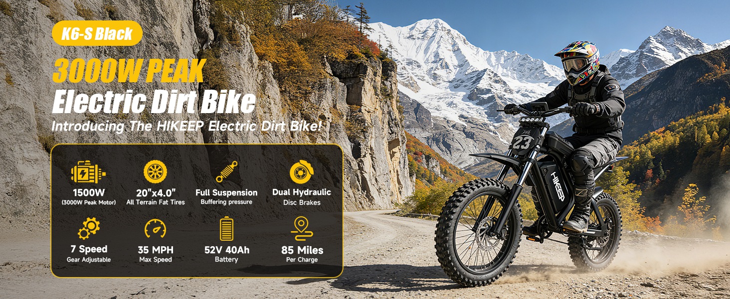 Electric Dirt Bike for Adults - Peak 1500W/3000W Electric Bikes, 28-35MPH, 48V/52V 15.6Ah/25Ah/40Ah, 70-120 Mile(PAS Mode), 16/20 Inch All-Terrain Fat Tire Electric Motorcycle
