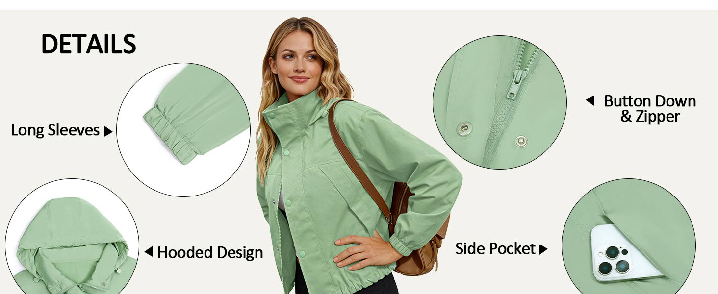 Windproof Zip Protection: Windbreaker Jackets feature a full-length zip and long sleeves for coverage. Windproof, water-resistant, and sun-protective, it shields from changing weather while allowing easy layering and reliable comfort outside