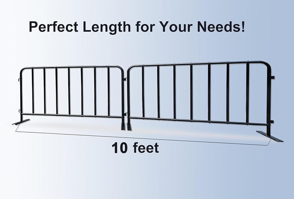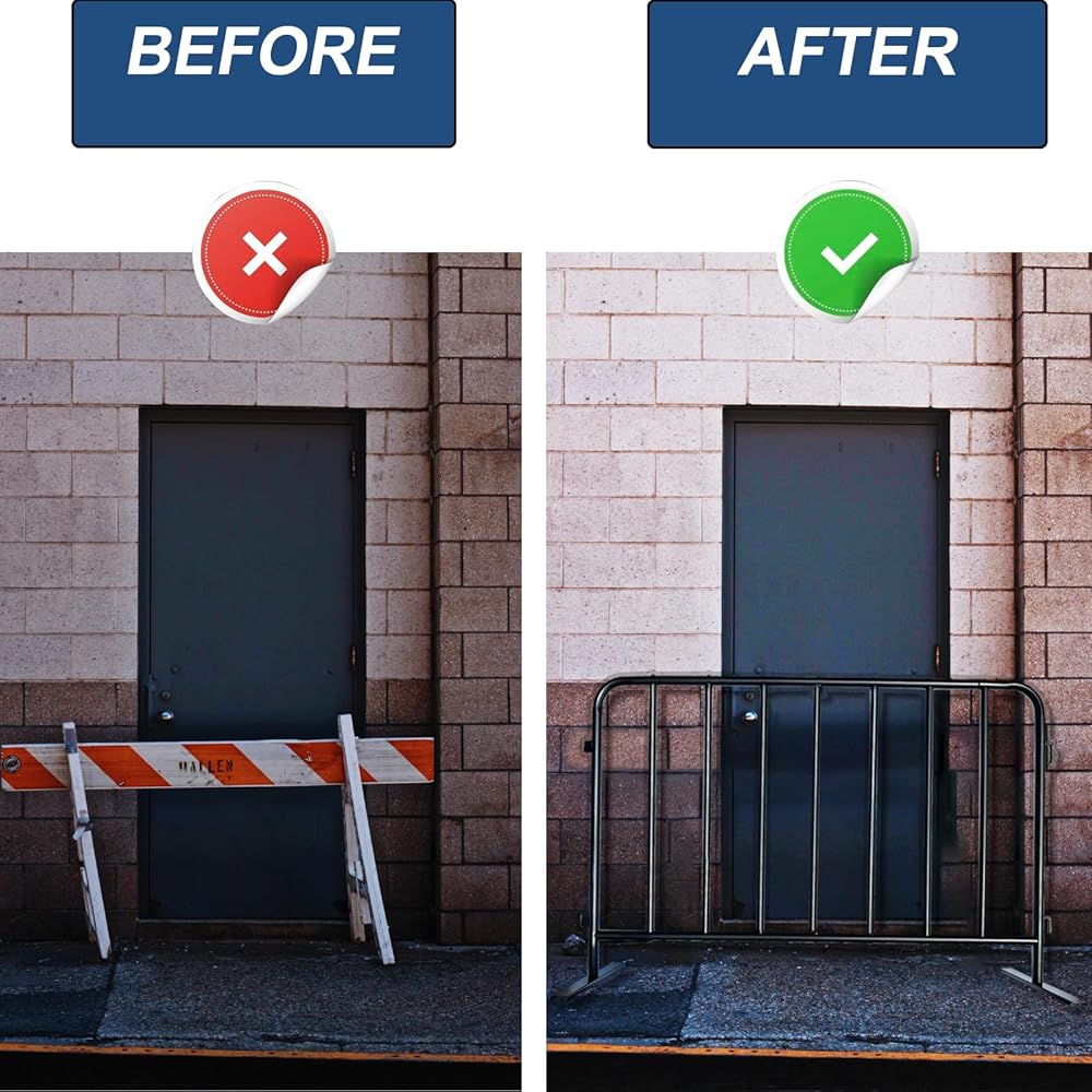 High-Traffic Performance Design Each set includes 2 interconnected barriers, measuring 60 inches (152cm) wide and 39 inches (100cm) tall—engineered to balance visibility with secure crowd control. Our patent-pending bolt assembly system eliminates the structural weaknesses inherent in welded barriers, while 1.0mm thick steel tubes with electrostatic powder coating resist chipping, fading, and rust—even in coastal environments. Versatile Applications Perfect for: - Event security and crowd management - Parking lot traffic division - Retail queue control - Warehouse safety zone demarcation - Social distancing setups