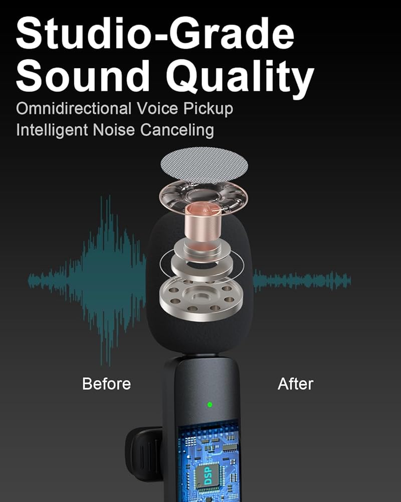 Crystal Clear Sound: The usb c microphones are equipped with professional-grade intelligent noise reduction chips and advanced 2.4 GHz transmission technology, which can effectively identify the original sound and clear recording in noisy environments