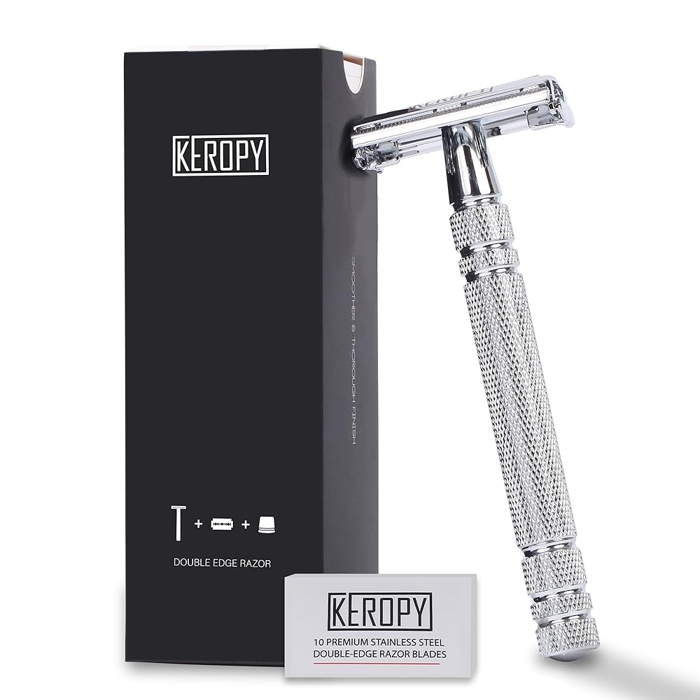 DURABLE & BUILT TO LAST A LIFETIME: Say goodbye to flimsy plastic disposables. This Reusable metal safety razor is crafted from high-quality, Durable Stainless Steel with Resistant Features, designed for years of reliable use. The Ergonomic Design of the weighted, non-slip Handle Features provides maximum control for a Safety conscious Wet and Dry Shave.