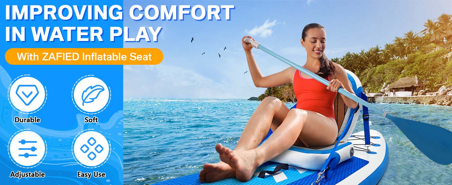 【Versatile & Stylish】ZAFIED paddle board seat is not limited to kayaks; it can also be used on paddle board, SUP, belly boat, canoe, fishing boat, duck boat, and more. The seat size is 20 ‘x20' and has a weight capacity of up to 500LB, easily handling people of all sizes. ☛☛BUT PLEASE NOTE: The space in which the seat is used must be greater than 20" in both length and width to prevent the seat from not fitting in when fully inflated!☚☚