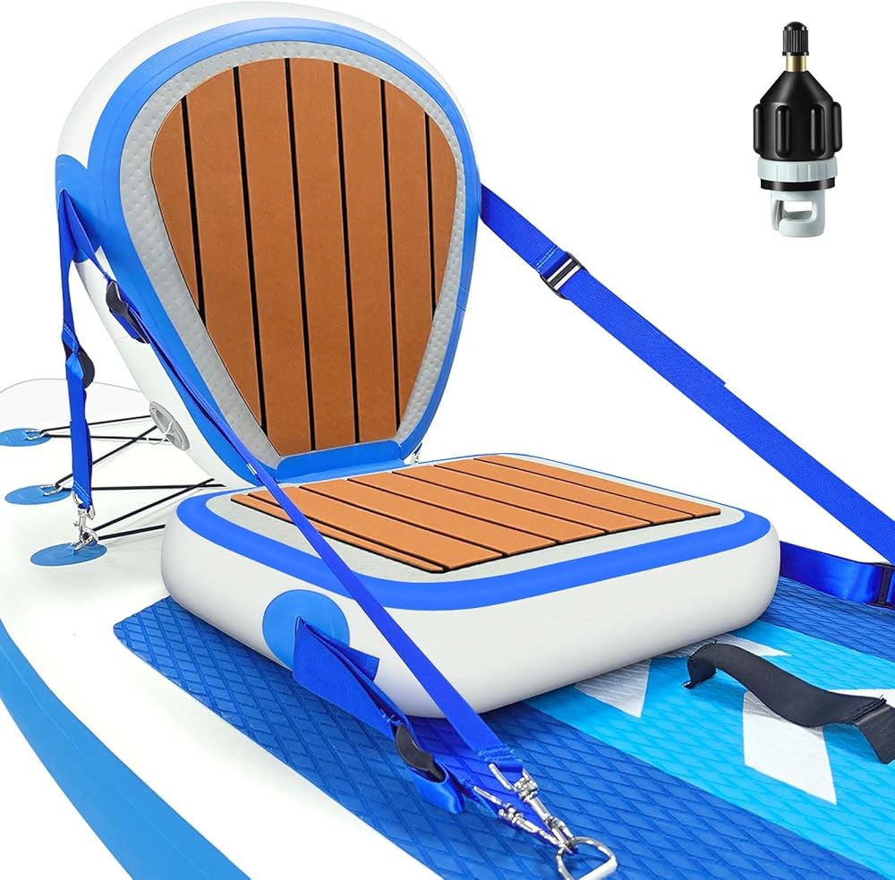 Inflatable Kayak Seat with Back Support, Universal Sturdy Paddle Board Seats for Sit on Top, Adjustable Blow Up Seat with Inflate Nozzle for Kayaking Canoeing Rafting