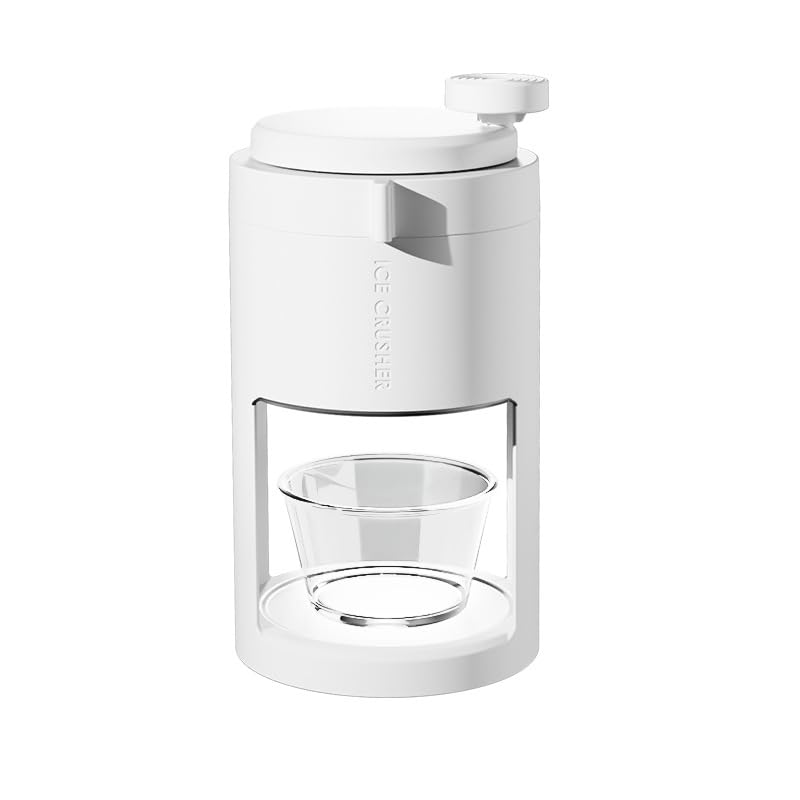 Beat the heat with this Manual Ice Shaver Crusher, the perfect hand-crank snow cone maker for refreshing frozen treats at home. Finished in a clean, modern white design, this compact ice shaver features a simple hand-crank mechanism that lets you crush ice quickly and effortlessly — no electricity required. The clear collection bowl sits neatly beneath the crushing chamber, allowing you to watch the fluffy shaved ice pile up as you crank. Whether you're making snow cones, chilling beverages, or preparing blended drinks, this manual ice crusher delivers consistently fine, smooth ice with every turn. Its straightforward design makes it easy to assemble, use, and clean. Lightweight and portable, it's ideal for backyard gatherings, camping trips, or everyday use in the kitchen. Simply load your ice cubes into the top chamber, turn the hand crank, and enjoy freshly crushed ice in seconds. A fun and practical addition to any kitchen, this snow cone maker brings the joy of frozen treats to the whole family.