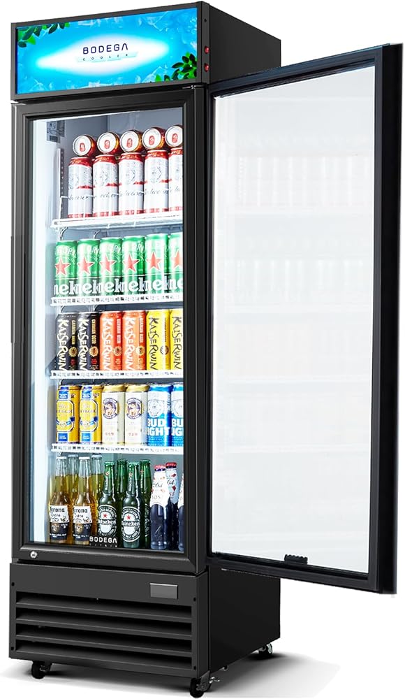 BODEGACOOLER Beverage Refrigerator and Cooler, Commercial Refrigerators with 4 shelves, Commercial Fridge with Soft LED Light. Merchandiser Refrigerators as Black Bar Cooler For Party, 9.0 Cu. Ft