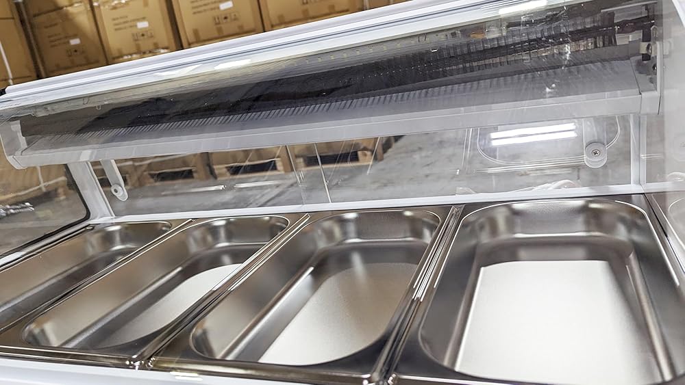 Sleek Design A bright white body, paired with the curved, tempered glass front, make this a sleek and modern approach to food display while also allowing the food itself to be the center of attention.