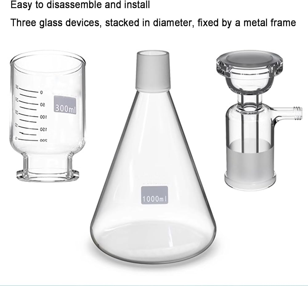 ★ Large Capacity: The 1000mL filter flask can handle larger jobs. The 300mL graduated cylinder funnel is easy to measure. Best used with 47-50mm membrane filter paper