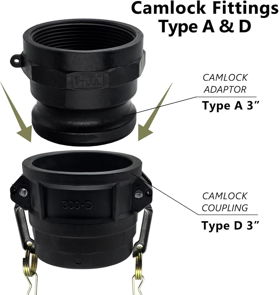 3 Inch Camlock Fittings Type A & D Polypropylene Cam and Groove Hose Fitting Kit with 3" Male & Female Camlock x 3" NPT Female, Cam and Groove Hose Couplings