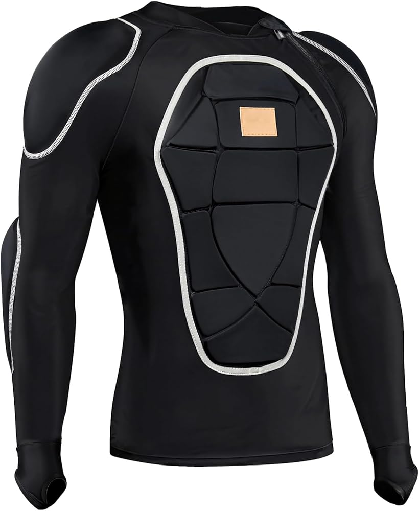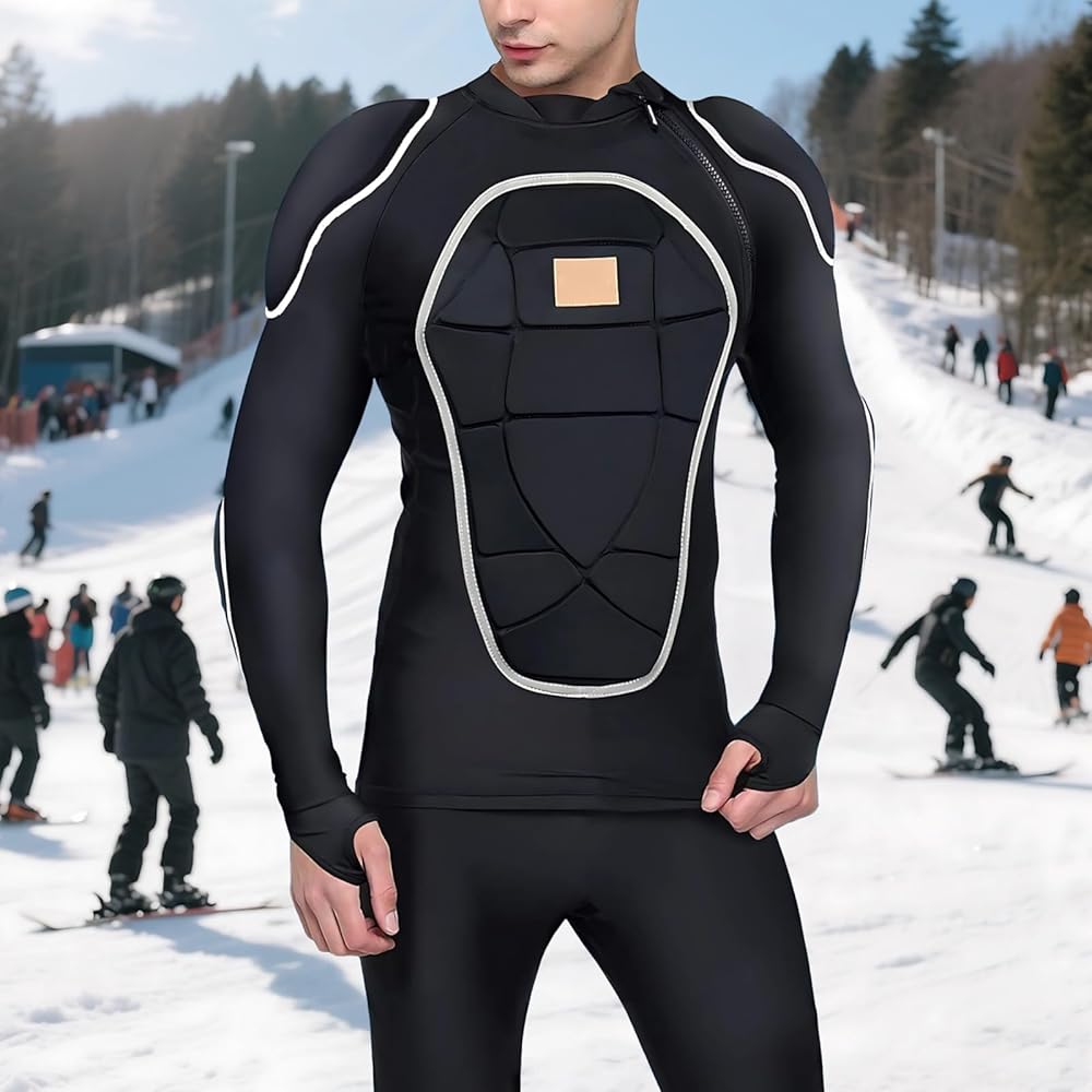 Protective Gear Cycling Armor Vest Long Sleeve Compression Clothes, High-Density Pe Padding Breathable Stretch Fabric, for Skiing Motorbiking and Outdoor Sports, Black