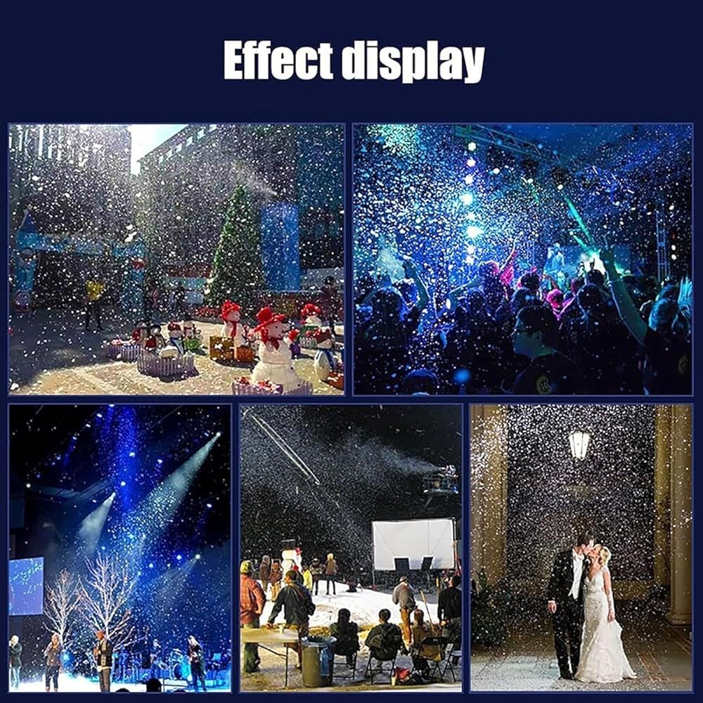 Equipped with a 1500W motor, this snow gun can produce large amounts of snow at high pressure, covering impressive distances to create a magical winter wonderland, which has a portable handle and can be carried to most venues so you can enjoy a visionary party anytime and anywhere.
