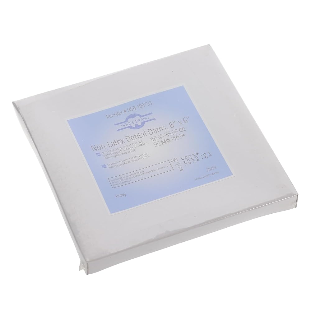 HSB - House Brand Dentistry's Non-Latex Dental Dams, 6" x 6", Heavy, 20/Pk deliver the durability, coverage, and reliability needed for demanding dental procedures. Made from premium synthetic materials, these heavy gauge dams combine exceptional tear resistance with the flexibility required for smooth, accurate placement.