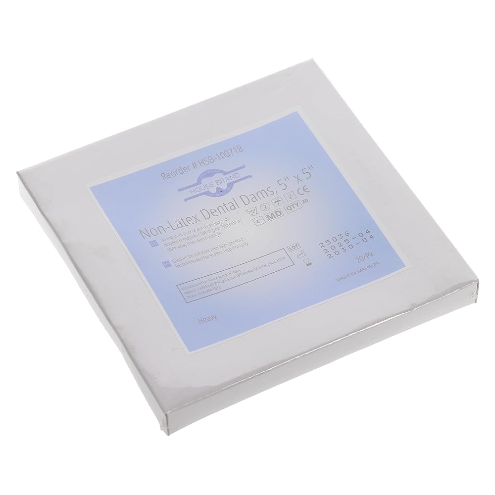 HSB - House Brand Dentistry's Non-Latex Dental Dams, 5" x 5", Heavy, 20/Pk give you dependable strength, smooth handling, and patient safety all in one easy-to-use product. Built from advanced synthetic materials, these dams combine heavy gauge thickness with excellent flexibility, so they resist tearing even in demanding procedures.