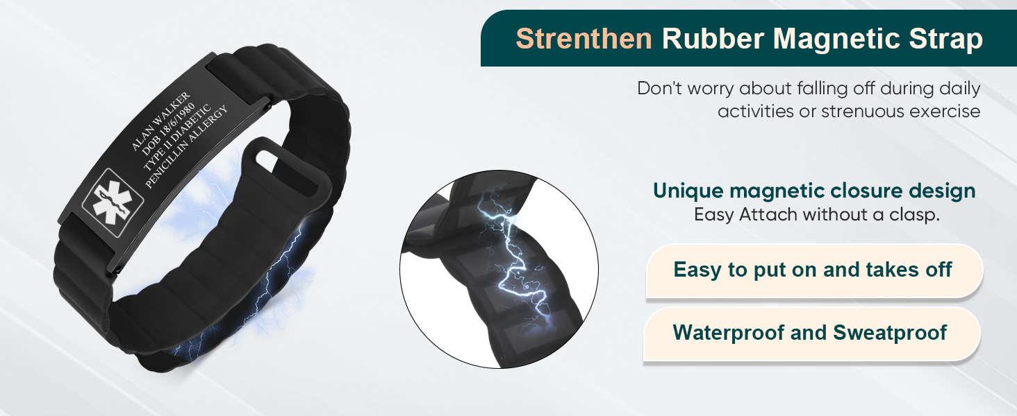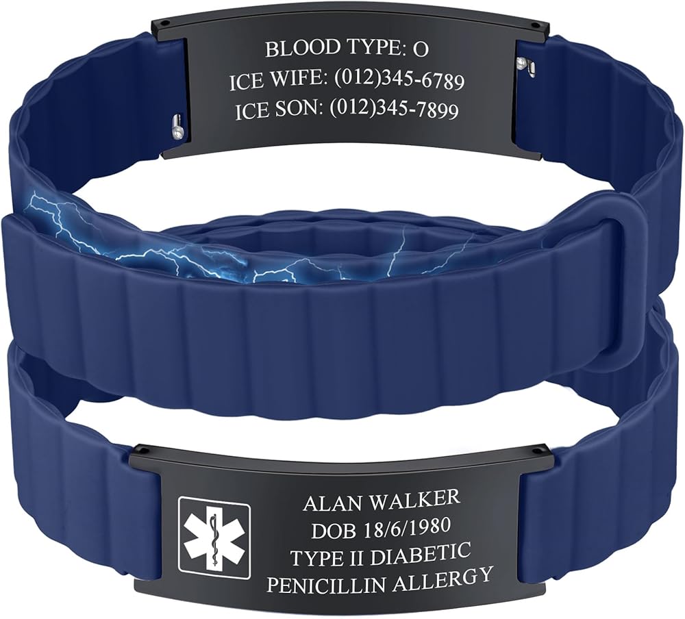 💝【ENGRAVING CONTENT RECOMMENDATION】 : Medications that you are taking or are allergic to; ICE, This allows a family member or friend to be contacted in case that you are in an emergency;Your name, this helps first responders communicate with you in case of an emergency. We will use High contrast laser engraving technology for engraving, with clear and easy to read engraving content. This sweat-proof medical id braceletsid durable, even if you wear for a long time, the font will not fade.