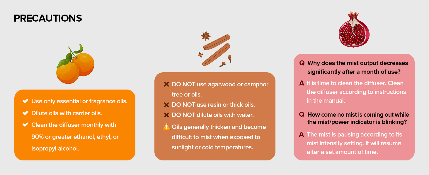 Up to 600 sq ft of Scent Coverage. Enjoy powerful scents at home, office, studio or even when you travel; Touch controls: 3 intermittent mist settings (Low/Medium/High), and 4 timer settings (3 Auto-off Timers & Timer-off Mode)