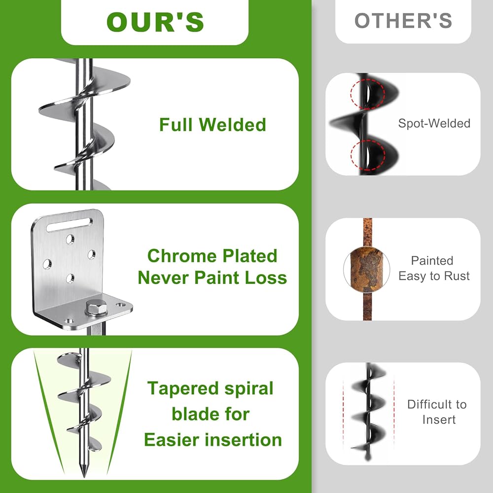 Fully Welded 2.8 Wide Tapered Spiral: Different from other common ground anchors, our 30" trampoline anchors is spiral blade tapers from wide to narrow for insert various ground. And fully welded, which is more durable.