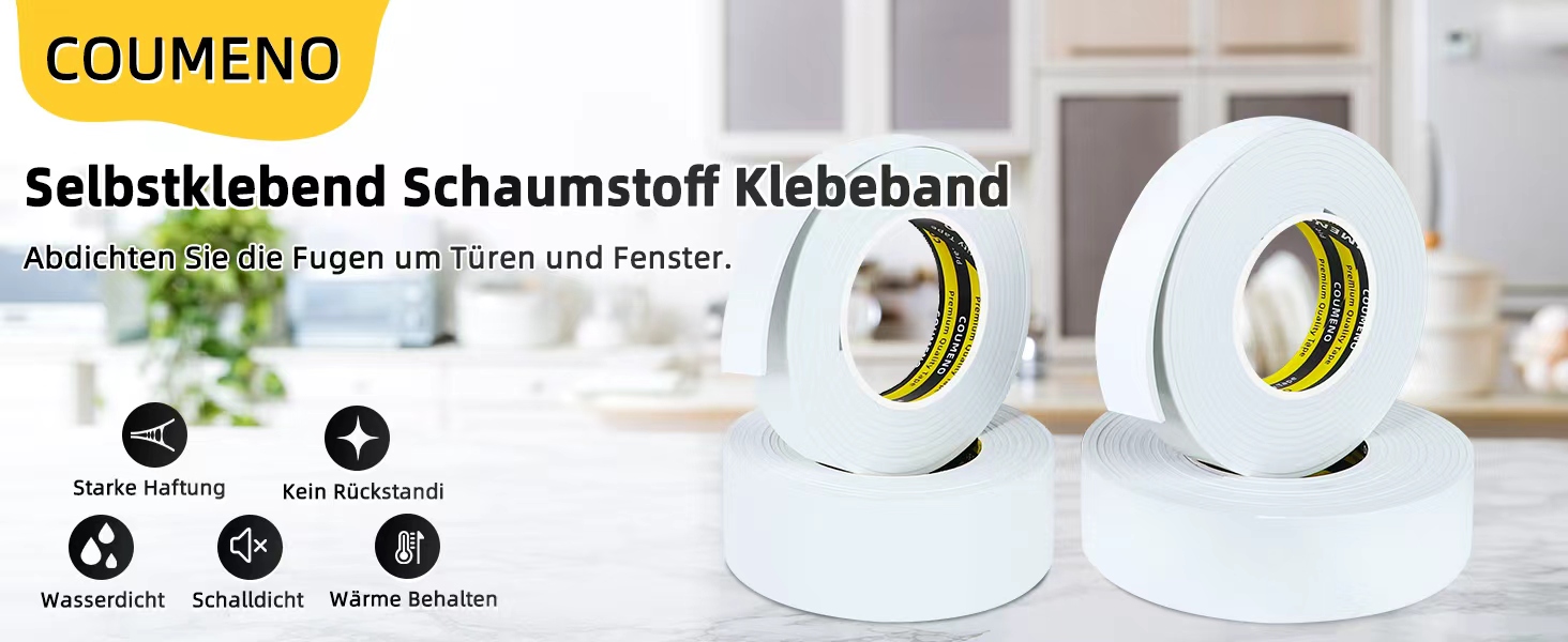 【High-density foam tape】 The product comes with self-adhesive, which is easy to peel without leaving any residual adhesive. It is mostly suitable for homes, schools and other places, and is mostly used as a weather strip for doors and windows.