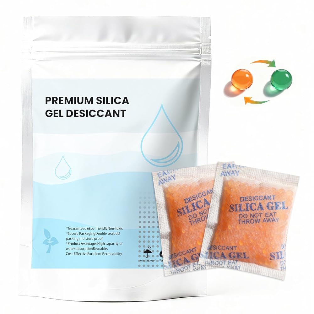 【Reusable Desiccant】Silica gel desiccant packets can be quickly regenerated and reused by heating at low temperature in a microwave or oven for about 2-3 minutes, saving long-term costs and providing a cost-effective, eco-friendly alternative to disposable moisture absorbers. (Note: Do not overheat or heat for extended periods, as it may damage the outer packaging.)