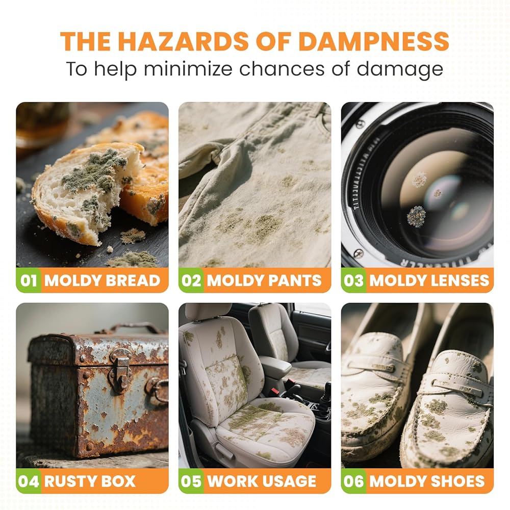 【Super Absorbent】Each 5-gram moisture absorber - desiccant pack can absorb up to 40% of its own weight in water vapor, effectively removing excess moisture and helping to protect your items from moisture damage, keeping them dry and safe.