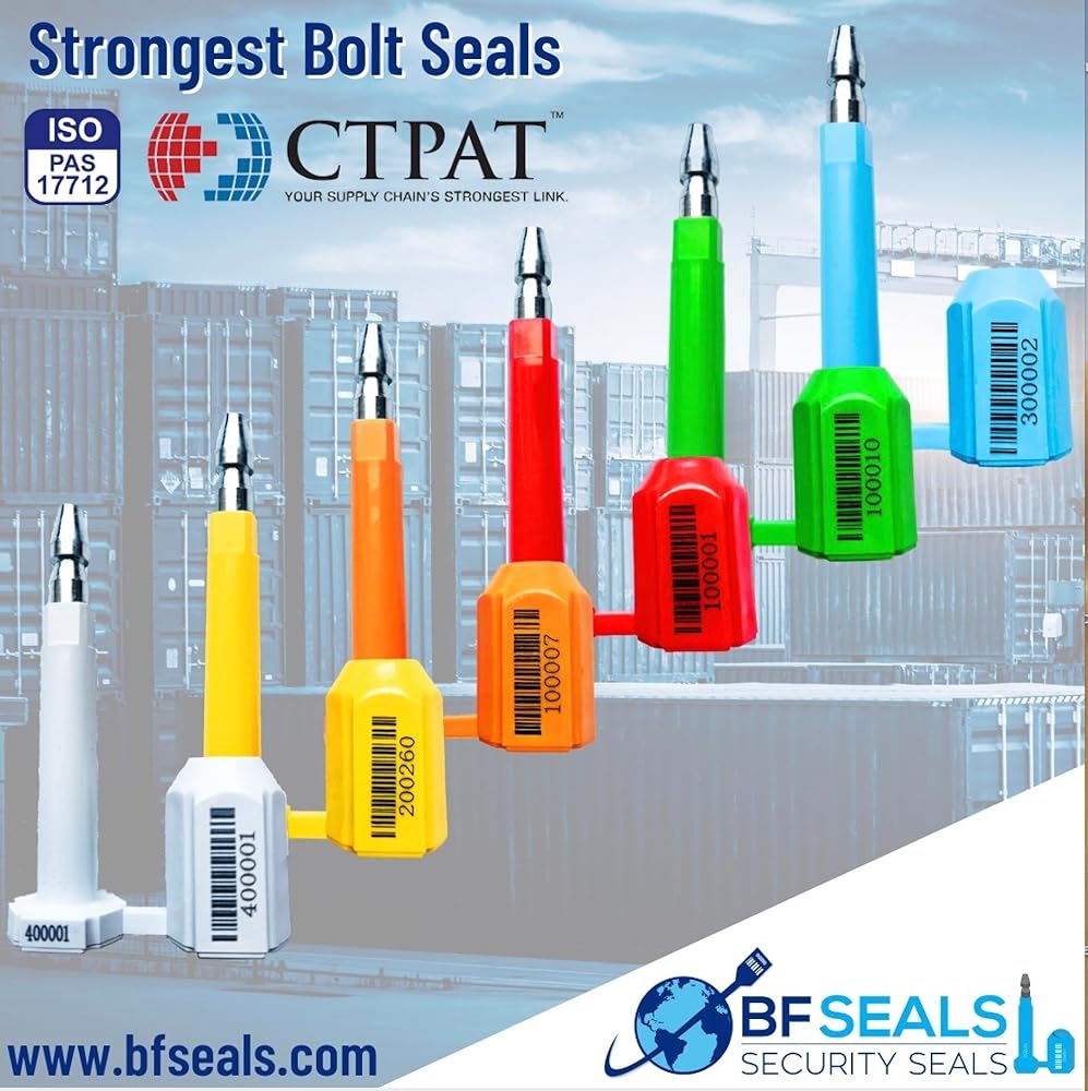High Security Bolt Seal, 100 pcs. White Color, for Cargo Container, Truck and Trailers, Numbered & Barcode, with ISO, CTAP, Certified, Shipping Seals. BFSEALS Free & Quick Shipping from USA