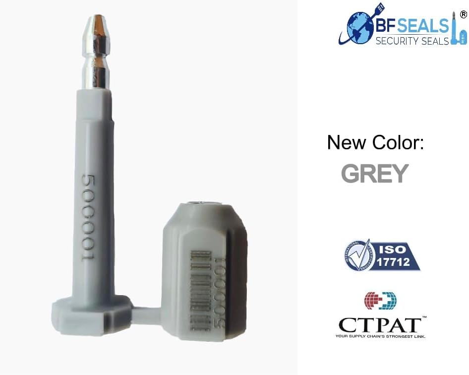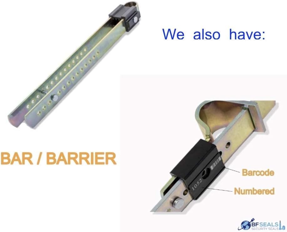High Security Bolt Seal - mod. BF-10HSBT15 🚦 Product Information: Tamper – Evident – Indicative. 🚦 Anti-Spin + ISO 17712:2013 “H” Certified + C-TPAT Compliant. ✅ Hardened carbon steel body with zinc chromate finish & high strength. ✅ High impact ABS plastic coating for visible tamper evidence. ✅ Anti-spin design to verify a locked seal easily. ✅ One piece of pin and barrel for easy handling. ✅ Flat and large printing area for clear printing identification. ✅ Identical sequential number on two parts to prevent parts replacement. 🚦 Applications: o✅ Security= Doors of Containers, Trailers and trucks, Railway Wagons - Trails o✅ Industries= Transportations, Food, Power companies, Chemicals, Military, Bank ✅ Government, Healthcare, Mining, Garments. 🚦 Instructions for Use: ✅ Insert the nail through the slot to close. ✅ Push the cylinder on the tip end of the nail until it Clicks. ✅ Verify that the security seal is sealed. ✅ Record the seal number to control. 🚦 Removal: ✅ By Bolt Cutter. 🚦 Specifications: ✅ Material: Body: Galvanized Q235A steel - Coating: ABS plastic ✅ Strength Category 18KN (Indicative seal, ISO).