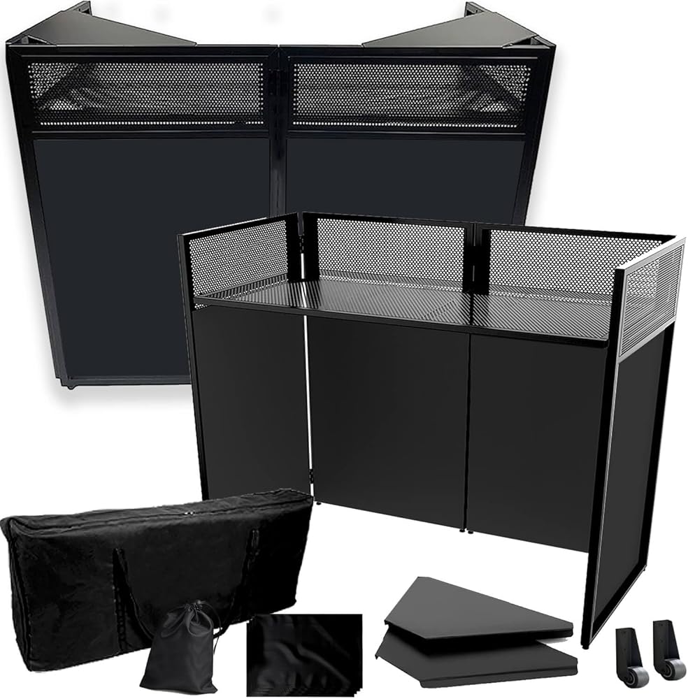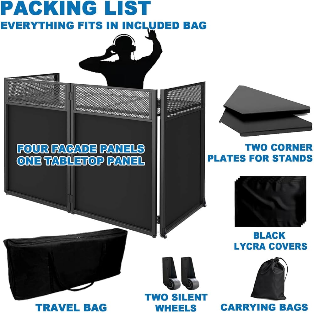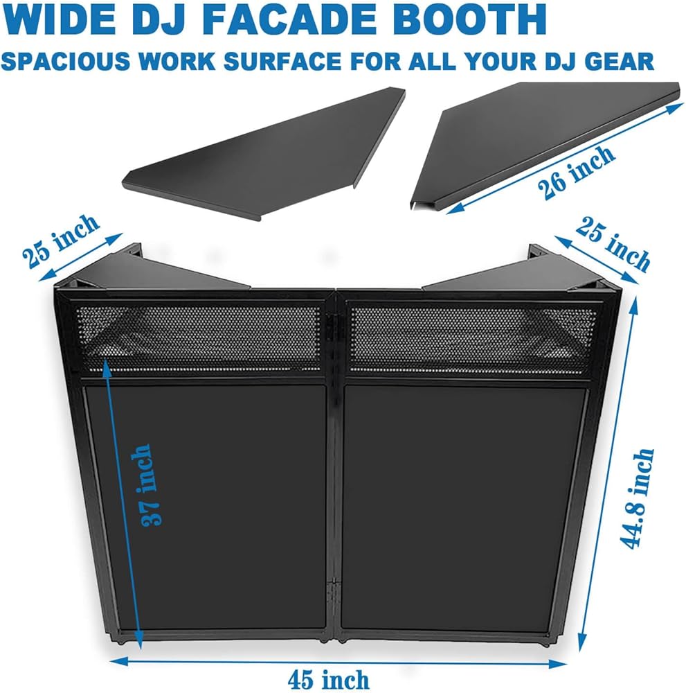 2026 Upgraded DJ Booth Stand Portable – 45"L x 25"W Foldable DJ Facade Booth with Dual Corner Panels, Wheels, Mobile DJ Controller Stand with Scrim & Carry Bag for Weddings, Parties & Events