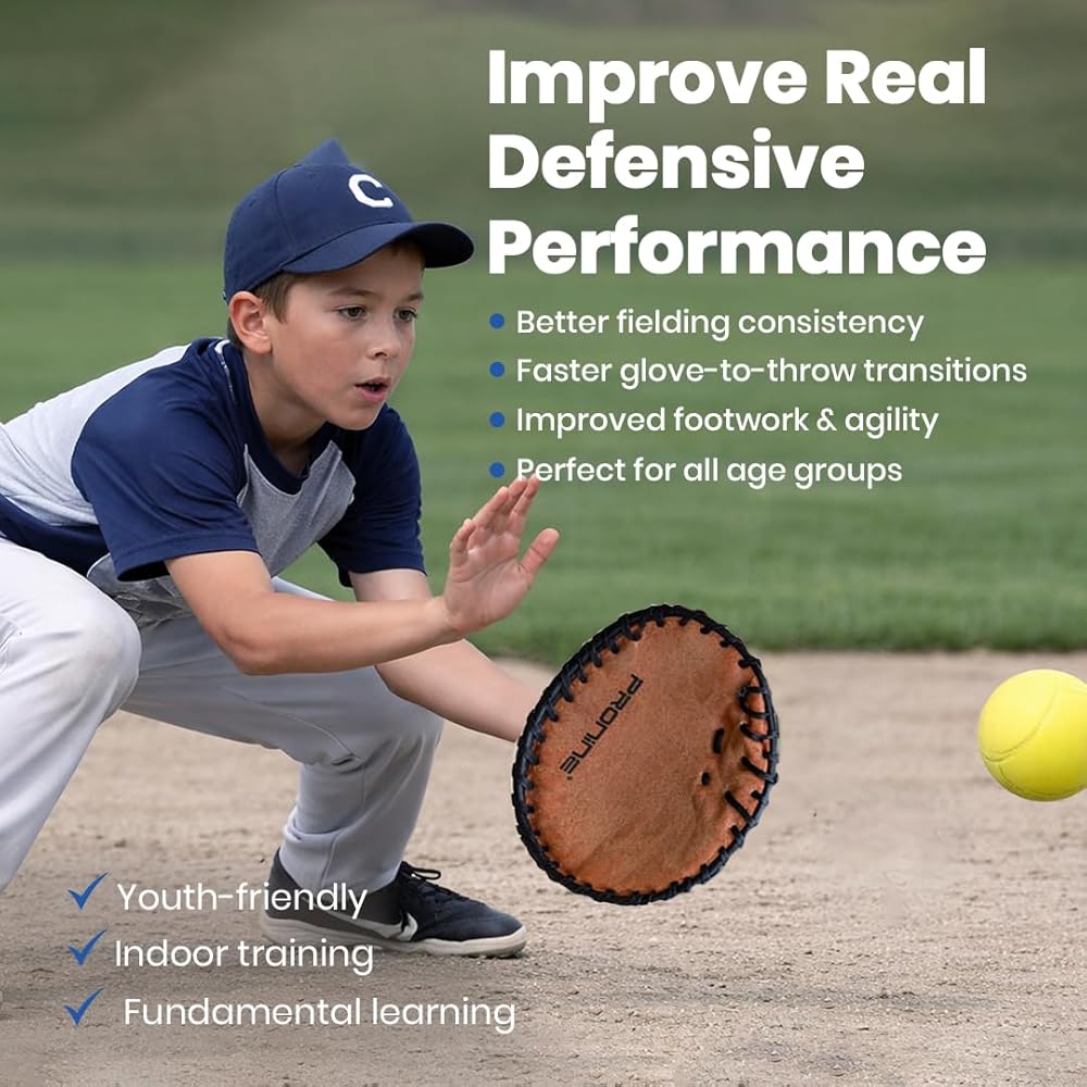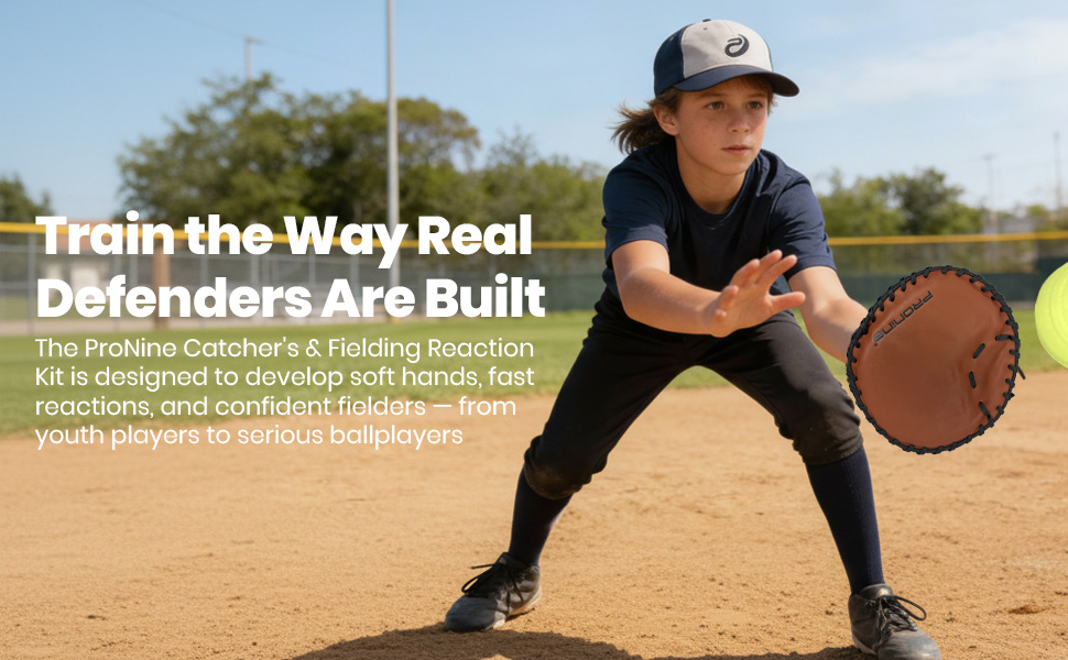 All-in-One Baseball Training Set Train more efficiently with this ProNine Sports 3-piece bundle, including a flat trainer glove, reaction ball, and indoor foam baseball. Built for structured drills, team practice, and individual training sessions.