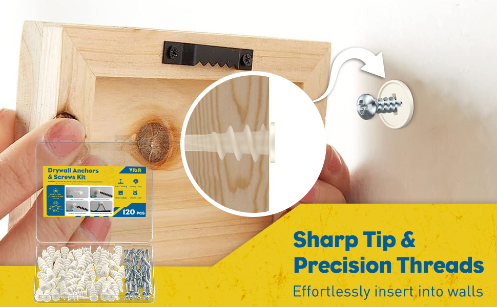 Easy & Secure Installation: No drilling required! Sharp anchor tip allows quick, effortless insertion, while expertly crafted threads wedge tightly against the wall, providing a firm, pull-out resistant grip and secure, twist-resistant mounting