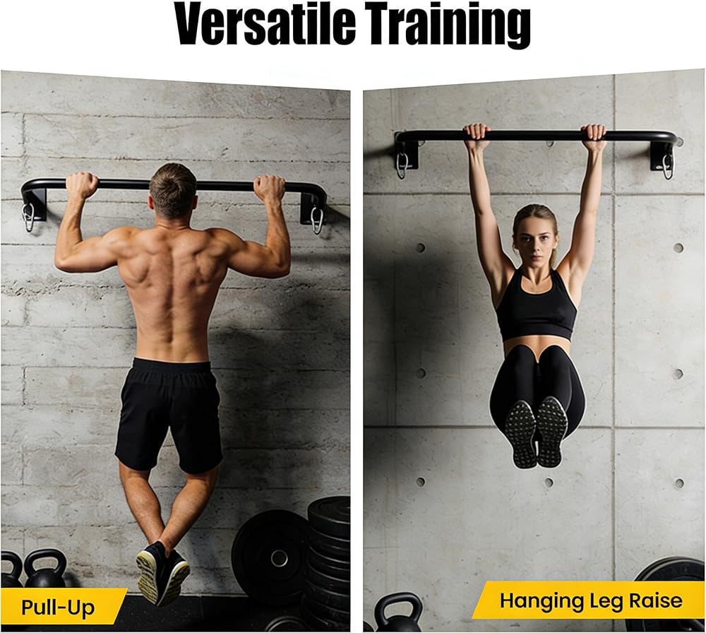 Heavy Duty Wall Mount Pull Up Bar with Adjustable Nylon Resistance Straps, Full Welded Reinforced Carbon Steel Bar for Indoor Outdoor Home Gym Full Body Strength Training