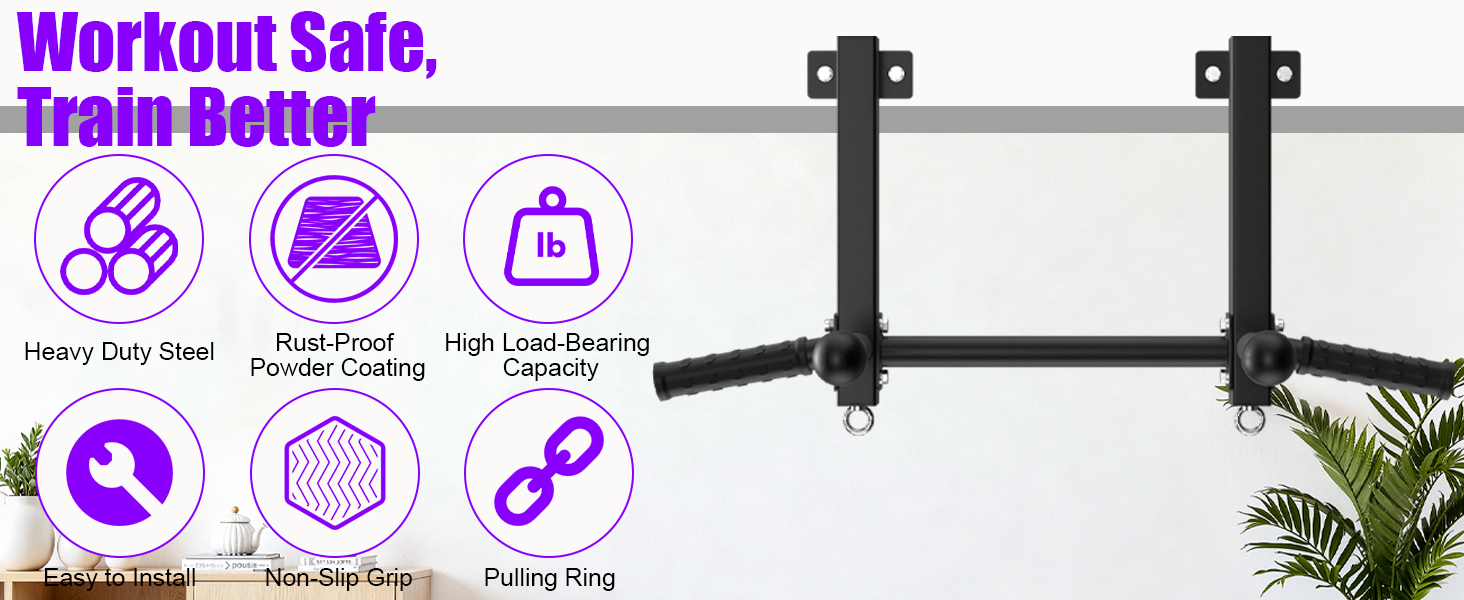 Stable and Sturdy: Engineered for high-intensity training, this heavy-duty pull up bar is constructed from reinforced steel with a solid 6mm thick plate, precision-welded into a single robust unit capable of supporting up to 650 lbs. Featuring a protective anti-rust coating, it ensures lasting durability in your garage, basement, and beyond — delivering rock-solid safety and reliable performance