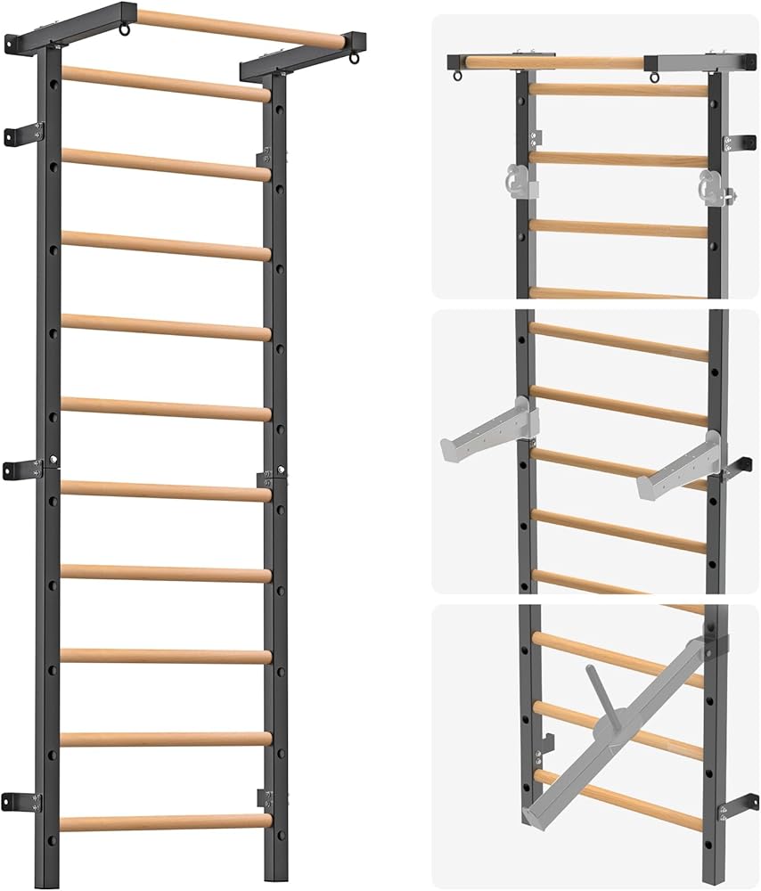 【FAMILY FITNESS FUN】With 11 wooden handles ranging from 7.2 inch to 89 inch in height, the wall gym equipment is perfect for family workouts and stretches, from children to adults